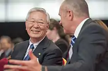 Nakanishi was chosen as chairman of the Japan Business Federation (Keidanren) in 2018. This was welcomed by local and international investors, who saw the election of the reformist Nakanishi to the conservative business lobby as recognition by the Keidanren that it needed to make improvements to corporate governance. As chairman, he advocated for the government to invest in digital technology, a drive supported by Yoshihide Suga upon becoming prime minister in 2020.[10] He was also instrumental in prompting the Federation to support the country's promise to become carbon neutral by 2050, in spite of its traditional opposition to climate change initiatives.[5]