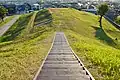 The Hiruiōzuka Kofun is a zenpō-kōen-fun (前方後円墳), which is shaped like a keyhole, having one square end and one circular end, when viewed from above. It is the largest keyhole-shaped tumuli in Gifu Prefecture and dates from the mid-4th century. It is located on the Makino plateau at an elevation of 25 meters. [2]