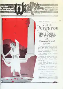 His House in Order is a 1920 American silent drama film produced by Famous Players-Lasky and distributed by Paramount Pictures. It was directed by Hugh Ford and starred Elsie Ferguson. It is based on a 1906 West End play by Sir Arthur Wing Pinero which also played in New York where it starred John Drew and Margaret Illington. The story was filmed again in the United Kingdom in 1928 and also titled House in Order.[1]