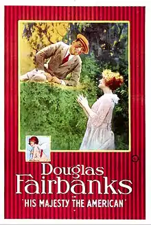 His Majesty, the American is a 1919 American silent comedy film directed by Joseph Henabery and starring Douglas Fairbanks.[2] It was the first film produced by United Artists. It was released in the U.K. as One of the Blood. Prints exist in the film holdings of Cohen Media Group (Raymond Rohauer collection) [a 35mm positive]; in the film holdings of EmGee Film Library [a 16mm reduction positive]; and in private film collections [a 16mm reduction positives].[3][4]