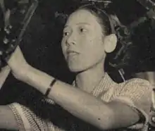 Hisako Koyama adjusting her telescope, 1951