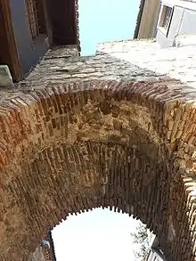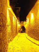 Hisar Kapia is a medieval gate in Plovdiv's old town and one of the most famous tourist sights in the city. The gate was built in the 11th century AD over the foundations of a gate from Roman times (probably from the 2nd century AD). Hisar Kapia is one of the three entrances (Eastern, Northern and Southern) to the acropolis of ancient Plovdiv. During the rule of the Ottoman empire revival houses were embedded in the remains of the old stone walls around the gate.[1]