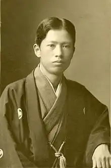 Hishida Shunsō (菱田 春草, September 21, 1874 – September 16, 1911) was the pseudonym of a Japanese painter from the Meiji period. One of Okakura Tenshin's pupils along with Yokoyama Taikan and Shimomura Kanzan, he played a role in the Meiji era innovation of Nihonga. His real name was Hishida Miyoji. He was also known for his numerous paintings of cats.