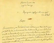 On 18 February 2010, the National Library of France purchased the 3,700-page manuscript[1] of Histoire de ma vie for approximately €7 million (£5,750,000). The manuscript is believed to have been given to Casanova's nephew, Carlo Angiolini, in 1798. The manuscript is believed to contain pages not previously read or published.[2] Following this acquisition, a new edition of the Bibliothèque de la Pléiade, based on the manuscript, was published from 2013 to 2015.[3]