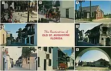In March 1958 a group from St. Augustine asked Florida Governor LeRoy Collins for the creation of a historic preservation program for the city's historic downtown. On June 11, 1959, House Bill 774 was signed into law, establishing the St. Augustine Historical Restoration and Preservation Commission and giving it $150,000 of state funds to begin its work.[2] Original members of the Commission were Herbert E. Wolfe, Leonard Usina, William F. Rolleston, William L. Sims II, and Henrietta Poynter.[3] Wolfe, a resident of St. Augustine, was the Commission's first chairman, serving from 1959 until 1969. The Commission hired consultant Earle Newton to help it develop a strategic plan for the restoration and preservation of St. Augustine buildings.[4] At its founding, the agency's primary objective was to restore the colonial architecture of St. Augustine in time for the city's Quadricentennial Celebration in 1965. Buildings the agency planned to restore dated to the First Spanish Period (1565-1763), British Period (1763-83), Second Spanish Period (1783-1821), and the early American Period (after 1821).[5] Senator Verle Pope and Representatives Charlie Usina and Gus Craig strongly supported the restoration program and fought for another $300,000 to further its work.[6]