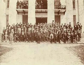 After 1874, the Democratic party had constant control of the state administration. The Republican Party by then was chiefly supported by African Americans. Republicans held no local or state offices, but the party did have some federal patronage. It failed to make nominations for office in 1878 and 1880 and endorsed the ticket of the Greenback party in 1882.[33][34]