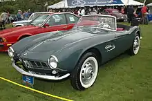 Influenced by the public response to the introduction of the Mercedes-Benz 300SL and Mercedes-Benz 190SL in 1954, BMW began development of a sports car based on the platform of the BMW 502 luxury sedan.[76] The styling was contracted out to industrial designer Albrecht von Goertz, who designed a two-seat roadster and a four-seat grand tourer versions.[77] The BMW 507 roadster was introduced at the Waldorf-Astoria Hotel in New York in early 1955,[78][79] while the BMW 503 four-seater was introduced a few months later.[77] However, high prices would be the downfall of both models. Max Hoffman, the BMW importer for the United States, told BMW that he would order 2000 507s if he could sell them for US$5,000 each. When the selling price was given as about twice that, and higher than the 300SL, he withdrew his offer.[80][81] 412 units of the 503 and 253 of the 507 were built during their production runs from 1956 (May for the 503, November for the 507) to March 1959.[81][82][83]