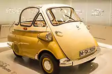 At the same time, BMW sought to offer a more affordable car. Motorcycles were BMW's largest money earner at the time, and their sales had peaked in 1954. Germans were turning away from mopeds and motorcycles toward light automobiles such as the Messerschmitt KR175 and the Goggomobil. After seeing the Iso Isetta bubble car at the 1954 Geneva Motor Show,[68][69] BMW entered talks with Iso Rivolta and bought both a licence to manufacture the Isetta and all the tooling needed to manufacture its body.[69][70] Production of BMW's version of the Isetta began in 1955; more than ten thousand Isettas were sold that year.[70] BMW made more than a hundred thousand Isettas by the end of 1958,[71] and a total of 161,728 by the end of production in 1962.[72]