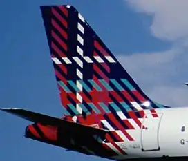 Several people spoke out against the change, including the former Prime Minister Margaret Thatcher, who famously covered the tail of a model 747 at an event with a handkerchief, to show her displeasure.[249] BA's traditional rival, Virgin Atlantic, took advantage of the negative press coverage by applying the Union flag to the winglets of their aircraft along with the slogan "Britain's national flagcarrier".[250] In 1999, with approximately half the fleet already repainted with Project Utopia livery, the CEO of British Airways, Bob Ayling, announced that all aircraft that had retained Landor livery would adopt the tailfin design Chatham Dockyard Union Flag originally intended to be used only on the Concorde, based on the Union Flag.[251] After Ayling resigned in 2000,[252] his successor, Rod Eddington, announced the entire fleet would receive the Chatham Dockyard Union flag tail in May 2001.[253] The final aeroplane with a "Utopia" tail - an Airbus A320 with Whale Rider artwork - was retired in 2006.[254]