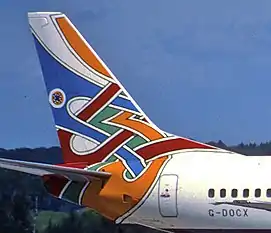 With its formation in 1974, British Airways' aeroplanes were given a new white, blue, and red colour scheme with a cropped Union Jack painted on their tail fins, designed by Negus & Negus.[238] British Airways selected the Negus & Negus design over competing entries from Lippincott & Margulies and Henrion. The "Negus" livery was phased in over a three-year period. It also adopted a blue version of the Speedbird logo from BOAC, moved to the nose of the planes, at the request of ex-BOAC staff.[239] The contract for British Airways was then the largest corporate identity branding commission in Europe.[238] David Nicolson, the chair of British Airways, said it would present "a modern, efficient, confident and friendly face to the public."[239]