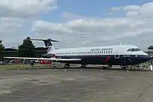 ex-Northeast Hawker Trident with "British airways" branding and Norjet tail.