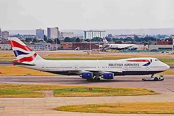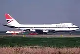 ex-BOAC Boeing 747 with "British airways" branding and Speedbird tail