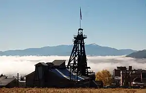 Contemporarily, around twenty of the headframes still stand over the mine shafts, and the city still contains thousands of historic commercial and residential buildings from the boom times, which, especially in the Uptown section, give it a very old-fashioned appearance, with many commercial buildings not fully occupied. Restoration and preservation of the city's historically-significant buildings has also been undertaken, with the Copper King Mansion as an example, having undergone significant restoration in 2011.[48] As with many industrial cities, tourism and services, especially healthcare[49] (Butte's St. James Hospital has Southwest Montana's only major trauma center), as well as energy companies (such as the Renewable Energy Corporation and NorthWestern Energy), are economic presences.[49] In 2014, NorthWestern Energy constructed a $25-million facility in uptown Butte.[50] are rising as primary employers, as well as industrial-sector private companies.[49] Many areas of the city, especially the areas near the old mines, show signs of urban blight but a recent influx of investors and an aggressive campaign to remedy blight has led to a renewed interest in restoring property in Uptown Butte's historic district,[51] which was expanded in 2006 to include parts of Anaconda and is now the largest National Historic Landmark District in the United States with nearly 6,000 contributing properties.[52]