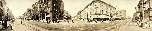 Panoramic view of Second and Harrison Streets, 1907