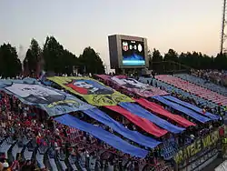 On 9 April 1974, Steaua's home, Stadionul Ghencea, was inaugurated with a friendly match opposing OFK Beograd which ended 2–2.[3] The arena was something new for post-War Romania, as it was built especially for football, with a capacity of 30,000 and with no athletics track. Up to that date, Steaua had played its home matches on either two of Bucharest's largest stadiums, Republicii and 23 August.