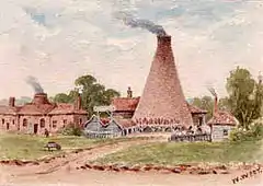 In 1826, although owned by Nathaniel Lee, the name of the occupier is William Scales and the site was trading as 'Scales Wm, brick and tile manufacturer'.[30] By 1843 the site was shown in rating records as 'Land & Potteries' as well as 'Tile Kilns and Land' together with '13 cottages compound'. This suggests that the two groups of buildings, although related, were producing slightly different goods. The cottages were those supplied for the workers.[31]