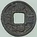 Japan's contacts with the Chinese mainland became intense during the Tang period, with many exchanges and cultural imports occurring.[3] The first Japanese embassy to China is recorded to have been sent in 630.[1] The importance of metallic currency appeared to Japanese nobles, probably leading to some coin minting at the end of the 7th century,[3] such as the Fuhonsen coinage (富本銭), discovered in 1998 through archaeological research in Nara Prefecture.[1] An entry of the Nihon Shoki dated April 15, 683 mentions: "From now on, copper coins should be used, but silver coins should not be used", which is thought to order the adoption of the Fuhonsen copper coins.[1] The first official coinage was struck in 708.