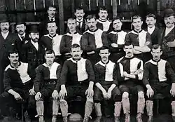 Newton Heath reached the final of the Manchester and District Challenge Cup a further five times, winning all but one. Meanwhile, in 1886, the club began to expand by signing players of national reputation such as Jack Powell, who became club captain, Jack and Roger Doughty, and Tom Burke.[14] In 1886–87 the club entered the FA Cup for the first time and were drawn away to Fleetwood Rangers in the first round; they managed to earn a 2–2 but when club captain Jack Powell refused to play a period of extra time, Fleetwood were awarded the tie. A subsequent unsuccessful protest to the Football Association[14] led to Newton Heath LYR entering a self-imposed exile from the FA Cup, which lasted until 1889.