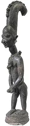 Evidence of iron smelting has been excavated at sites in the Nsukka region of southeast Nigeria in what is now Igboland: dating to 2,000 BC at the site of Lejja[6][7] and to 750 BC and at the site of Opi.[7] The Nok civilisation of Central Nigeria flourished between 1,500 BC and AD 200, producing life-sized terracotta figures that are some of the earliest known sculptures in Sub-Saharan Africa, and included human heads, human figures, and animals. The Nok culture smelted iron by at least 500 BC and likely earlier.[8][9][10][11][12] Based on stylistic similarities with the Nok terracottas, the bronze figurines of the Yoruba kingdom of Ife and those of the Bini kingdom of Benin are believed to be continuations of the traditions of the earlier Nok culture.[13]