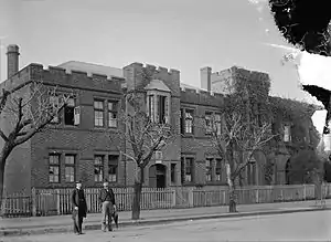 In 1911, the University of Western Australia became Perth's first university, but it was not until 1913 that tuition began.[16] The original campus was located in Irwin Street, between Hay Street and St Georges Terrace.
