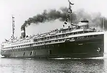 - The Charles Lyon was named after Lyon's father, and before its launch in December 1907, was originally meant to be named the Ogdensburg. It weighed 1,658 short tons (1,480 long tons), making it "larger than all the [Canadian Pacific Car and Passenger Transfer Company]'s previous passenger and car ferries put together."[29] It was constructed in steel by the Polson Iron Works in Toronto. It was remarkable for several unusual design features, such as a three-track deck configuration (different from any other ship operating in the Great Lakes region) which only allowed up to two tracks, with six cars per track, to be loaded. The third centre track was likely intended to avoid imbalances which would affect the ship and cause serious listing. It was also a double-ended ship, which simplified operations by eliminating the need to back the ship into and out of ferry slips.[29]