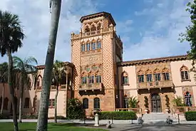 Charles Ringling and his wife, Edith, began building their bay front winter retreat in the early 1920s. Charles Ringling died in 1926, just after it was completed. For decades Edith Ringling remained there and continued her role in the administration of the circus, assuming many duties of her husband, and her cultural activities in the community. Her daughter, Hester, and her sons were active in Sarasota's theatrical and musical venues. What came to be known internationally as the Edith Ringling Estate is now the center of the campus of New College of Florida.[25][26]