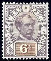 An 1888 revenue stamp of Sarawak featuring the picture of Charles Brooke