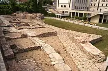 A set of no less than 8 horrea (warehouses) were found inside the southwestern quarter of the walls and dated to the early 4th century indicate that Serdica was probably a supply-centre of regional importance, connected to the Danube by the valley of the river Iskur (Oescus).[14]