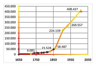 | 1816 | 21,528 | incl. 742 Catholics and 74 Jews.[28] |