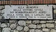 Taormina was the headquarters of the German Wehrmacht Command in Sicily during World War II. On 9 July 1943, the feast of the patron saint Pancrazio, two separate Allied bombardments killed over 100 civilians and caused considerable destruction in parts of the southern end around Porta Catania. The German High Command was holding a meeting in the San Domenico hotel and although it was hit by bombs and sustained damage, only Saint Agnes's church within the hotel was completely destroyed. The villa of Wilhelm Von Gloeden which fronted the hotel was razed to the ground. A plaque memorial to the people who lost their lives in the raids is located in the square outside Porta Catania.
