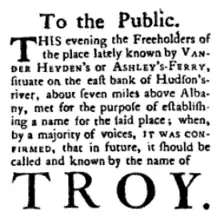 | Wikimedia Commons has media related to History of Troy, New York. |