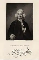 After ten years of unsuccessful petitions, the Connecticut General Assembly granted complete town rights in October 1797. The new town was named for George Washington's staunch supporter, Revolutionary War governor, patriot, statesman, merchant, and slave owner, Jonathan Trumbull (1710–1785).[1]
