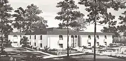 The first building on the campus, constructed between 1912 and 1913, was named in honor of William Lorraine Converse, Sr. who, as a State Representative, helped expedite the establishment of the college in Valdosta. On December 19, 1912, Dr. Powell moved into office his in the new building and the first pieces of furniture were installed in preparation if the school's opening.[2] Converse Hall served a variety of purposes for the new institution. The structure provided classrooms, administration offices, double-occupancy dormitory rooms, a dining hall, an infirmary, and a chapel. The Spanish Colonial Revival architecture of college in Valdosta was based on the popular style of the era, as well as Powell's personal experiences in the American Southwest. The school opened in January 1913, but the surrounding landscape was primarily undeveloped There were no driveways or sidewalks, and the predominant wetlands at the south were only crossable at Patterson Street.