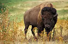 The commercial bison industry breed bison for food which can conflict with conservation strategies. Due to the industry's view of bison as a commodity, the role of the bison as an important species for the ecology of grassland ecosystems remains largely theoretical.[103] By the 1960s, wildlife preservation efforts had transformed into a bison ranching industry, and many parks in Canada were almost indistinguishable from the agricultural operations that surrounded them.[104] The bison, the same animal that symbolized the disappearing wild, was transformed into "meat" by the very institutions that had been instrumental to its rescue and preservation.[105] Many of the bison herds have become hybridized with cattle species, due to commercial efforts to create "cattalo" during the period when bison numbers were very low in the late 1800s and early 1900s.[106] as of 2011, there is a total 400,000 plains bison in North America, only about 20,000 are considered "wildlife."[107] As such statistics show, contemporary bison conservation is more complicated than simple efforts to increase the species' population; modern conservation measures need to focus on returning the bison to its wild state through the restoration of native prairie ecosystems. The Canadian Bison Association (CBA), an organization composed of over 1,500 producers and 250,000 bison, are working in cooperation with numerous conservation groups to develop strategies to help return bison to its natural, wild state.[108]