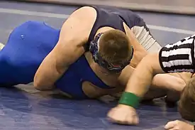 The roots of collegiate wrestling can be traced back almost as far as the earliest moments in United States history. There were already wrestling styles among Native Americans varying from tribe and nation by the 15th and 16th centuries, when the first Europeans settled. The English and French who settled on the North American continent sought out wrestling as a popular pastime. Soon, there were local champions in every settlement, with contests between them on a regional level. The colonists in what would become the United States started out with something more akin to Greco-Roman wrestling, but soon found that style too restrictive in favor of a style which a greater allowance of holds.[1] In the backcountry of Virginia and the Carolinas, wrestling contests were among the favorite athletic events of Scots-Irish colonists. The brutality of the matches was so great that the Assembly of Virginia had to legislate against illegal holds by prohibiting "maiming 'by gouging, plunking or putting out an eye, biting, kicking or stomping upon'" an opponent. In the backcountry, these rules and laws were largely ignored.[2]