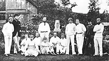 The History of the Australian cricket team began when eleven cricketers from the colonies of New South Wales (NSW) and Victoria formed an eleven to play a touring team of professional English cricketers at Melbourne in March 1877. Billed as the "Grand Combination match", the game is now known as the first Test match. Encouraged by a 45-run victory, the colonists believed that they had enough cricketing talent to take on the English on their own soil. A team organised and managed by John Conway, a former Victorian player, toured England during the 1878 season. After a discouraging loss to Nottinghamshire in the opening match of the tour, the Australians met a Marylebone Cricket Club (MCC) team at Lord's on 26 May 1878. Australia's upset win by nine wickets was "the commencement of the modern era of cricket", according to Lord Hawke.