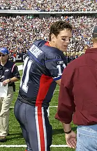 After the 2004 season, wanting to go in a younger direction and unhappy with Drew Bledsoe's overall performance, the Bills decided to hand the starting quarterback reins to J. P. Losman. This angered Bledsoe, who demanded his release, which the Bills granted. Bledsoe then signed with the Dallas Cowboys, reuniting him with his former New England Patriots coach Bill Parcells.[16]