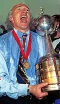 With a highly compact tactical lineup and the goals of the formidable duo Jardel and Paulo Nunes, Grêmio won the coveted trophy again in 1995 after beating an Atlético Nacional led, once again, by the iconic figure of René Higuita.[48] Jardel finished the season as the top scorer with 12 goals. The team coached by Luiz Felipe Scolari was led by the defender (and captain) Adilson and the skilful midfielder Arilson.
