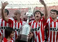 In the 1996 season, figures such as Hernán Crespo, Matías Almeyda and Enzo Francescoli helped River Plate secure its second title after defeating América de Cali in a rematch of the 1986 final.[49]
