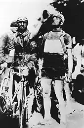 Italian Ercole Baldini took the lead of the 1958 Giro d'Italia after winning the mountainous, fifteenth stage to Bosco Chiesanuova.[5][80] He won one more stage en route to his overall victory.[80][81][82] The 1959 Giro d'Italia was headlined by the favorites Jacques Anquetil and Charly Gaul.[83] Anquetil held the lead of the race going into the penultimate stage.[83] Before the stage, Gaul stated openly that he was going to attack on the slopes of the Piccolo San Bernardo which caused Anquetil to mark him for most of the stage.[83] Gaul stayed true to his word and attacked as the riders made their way up the Piccolo San Bernardo.[83] Anquetil — who had eaten poorly during the stage — was unable to counter his later attacks.[83] Gaul got away, won stage, and gained close to ten minutes on Anquetil that was sufficient enough to win him the event.[83][84]