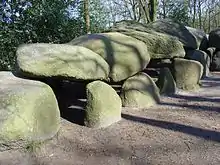 The Funnelbeaker culture was a farming culture extending from Denmark through northern Germany into the northern Netherlands. In this period of Dutch prehistory, the first notable remains were erected: the dolmens, large stone grave monuments. They are found in Drenthe, and were probably built between 4100 BC and 3200 BC.