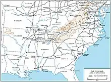 A transportation revolution was underway thanks to heavy infusions of capital from London, Paris, Boston, New York, and Philadelphia. Hundreds of local short haul lines were being consolidated to form a railroad system, that could handle long-distance shipment of farm and industrial products, as well as passengers.[5] In the South, there were few systems, and most railroad lines were short haul project designed to move cotton to the nearest river or ocean port.[6] Meanwhile, steamboats provided a good transportation system on the inland rivers.