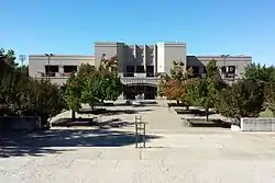 J. William Fulbright was selected after a short period by Governor Carl E. Bailey to assume the presidency of the university, a term that ended only two years later with his firing by Bailey's successor, Homer Adkins.[39] In the brief time that Fulbright was president, he essentially continued the policies left behind by the deceased Futrall, though for the first time, the school's stadium became known as Razorback Stadium.[40] Fulbright's termination came as a result of Adkins' election, who had promised to "[t]ake the University out of [p]olitics." As a result, Adkins with the assistance of the legislator, changed the process by which the board of trustees was elected, and followed that with the firing of a number of high-ranking individuals at the university. Fulbright later gained revenge on Adkins, by defeating the governor for the Senate seat in 1944.[41]