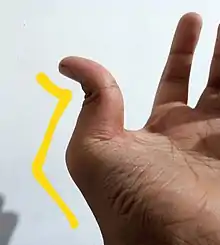| Other names | Distal hyperextensibility of the thumb, thumb hypermobility, Z-shaped deformity,[2] duck-bill thumb [3] |