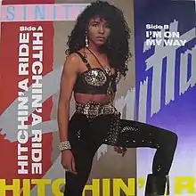 "Hitchin' a Ride" was covered by American singer Sinitta. It was released in 1990 as the fifth and final single from her second album Wicked (1989). The song was produced by Ralf Rene Maue. The B-side contains a previously unreleased song "I'm On My Way". This single reached number 24 in the UK,[16] number 19 in Ireland, and number 131 in Australia.[17]