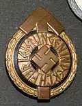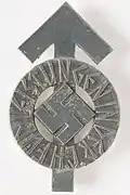 The badge was numbered on the reverse and is similar in appearance to the standard badge, but edged in gilt rather than silver.[6] The right to wear the Golden Hitler Youth Badge continued after the recipient left the Hitler Youth and no longer wore the uniform. The Leader of the National Hitler Youth could grant the right for the recipient to wear the badge indefinitely.[5]