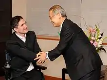 Hitoshi Kimura (on the right) with Branislav Kapetanovic at the Ministry of Foreign Affairs in Japan