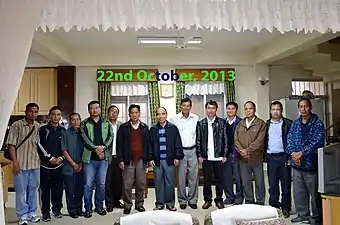 At the initiatives of Hnahthial District Function Demand Committee (HDFDC), the leaders of the District Demand Committees from Hnahthial, Khawlzawl and Saitual held talks with leaders of each political parties on 21st and 22nd October, 2013 in Aizawl. The main aim was to find out the stand of each party on the implementation of the long delayed three new districts already announced by the then MNF-led government on 12th September, 2008. The leaders of Hnahthial District Function Demand Committee who left Hnahthial on 21st September, 2013 for Aizawl were listed below: