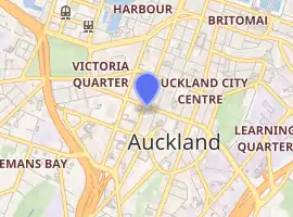 - Auckland Harbour Board Workshops, corner Lower Hobson and Quay Street, 1944-1989, site spread between Lower Hobson St, Customs Street and Quay Street, repair of boats, cranes and other equipment.[5]