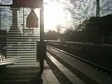 In the southern area, the station had several freight and storage sidings until the 1990s.[27] In addition, in the past there was a "house" platform (next to the station building) and its track, both of which have disappeared however with the use of the entrance building for railway operations. Currently it has four platform faces. Platforms 2 and 3 serve as through tracks.[28] The platform was modernised in the course of the integration of the station into the network of the Rhine-Neckar S-Bahn. There are two different entry heights on platform 3 and 4. On platform 1 is a through track and a siding for a fire engine that has been adapted so that it can run on rails in order to fight fires in the Heiligenberg Tunnel.